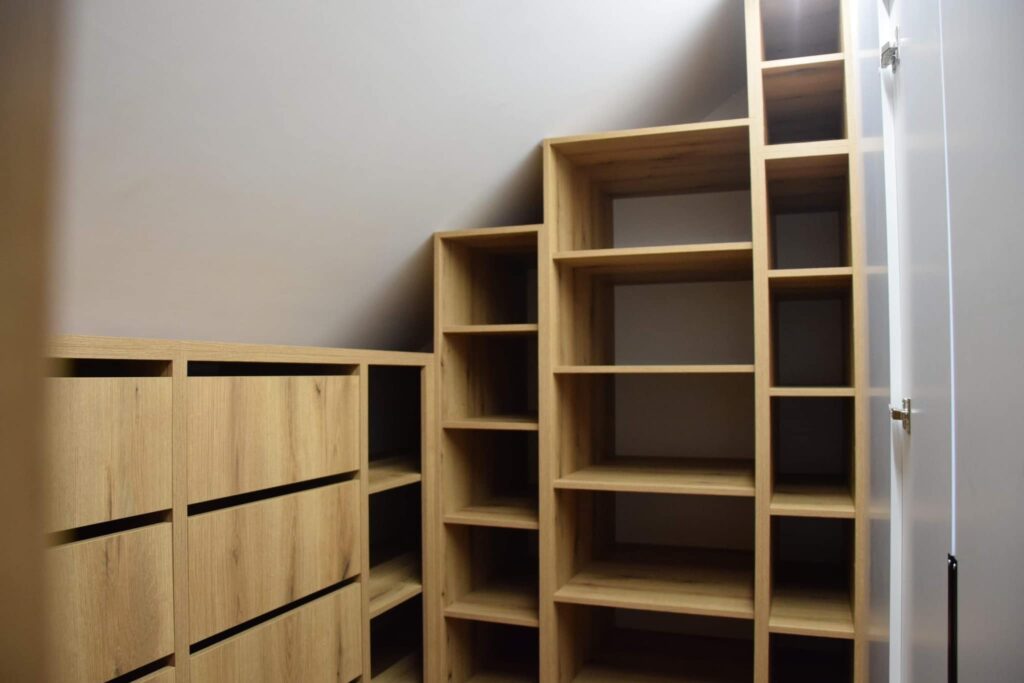 Projektujemy garderoby na wymiar, które pomogą utrzymać porządek w Twoich ubraniach, butach i akcesoriach. Nasze rozwiązania obejmują różnorodne konfiguracje półek, szuflad, koszy i wieszaków, dostosowane do indywidualnych potrzeb. Możemy również zintegrować oświetlenie LED, które ułatwi korzystanie z garderoby w każdych warunkach. Oczywiście wykonujemy też garderoby pod specjalne zamówienia i życzenia Klienta , które ustalamy na wstępnej rozmowie.